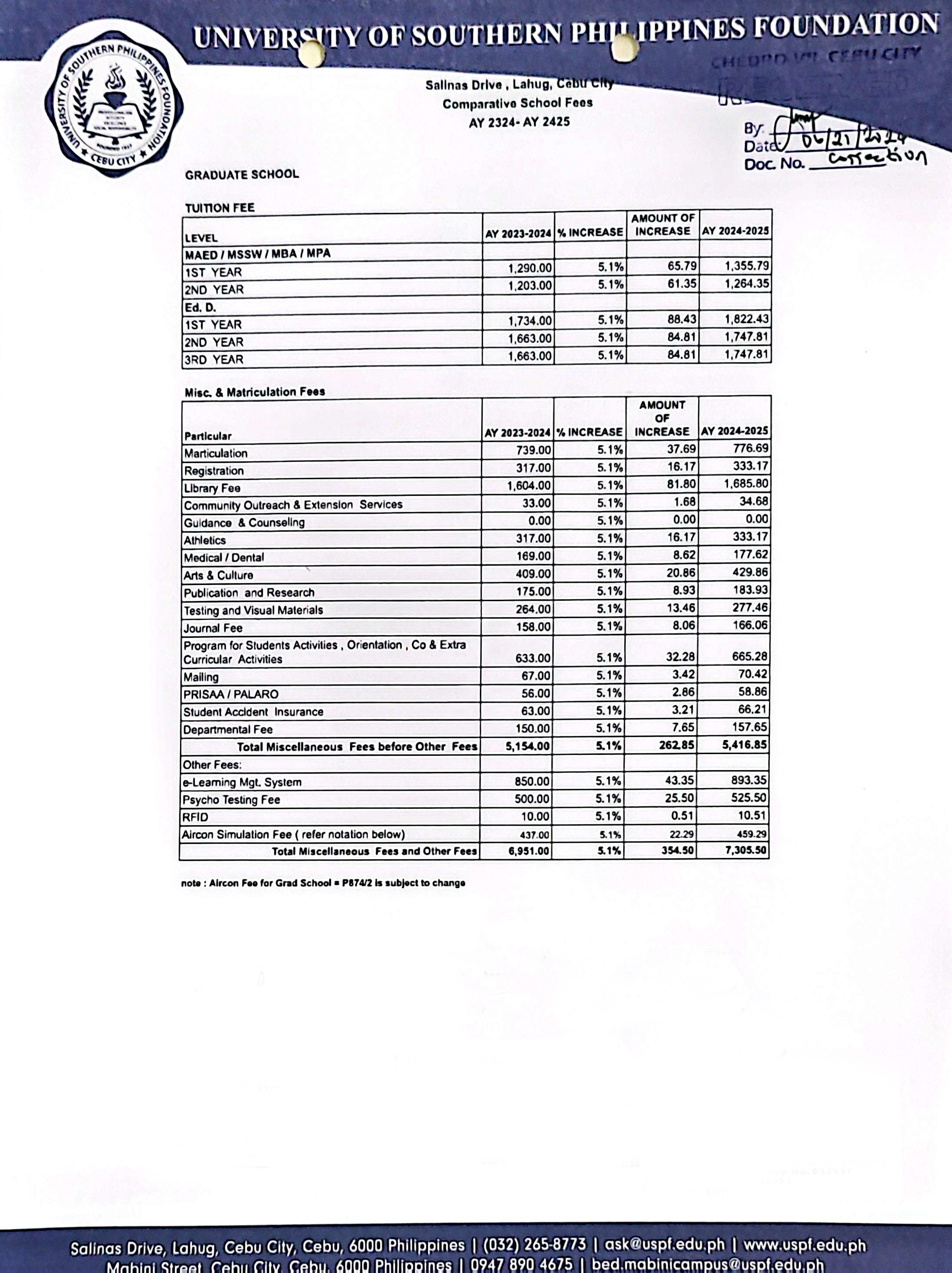 Graduate School Tuition and Other School Fees (TOSF) For AY 2024 to 2025