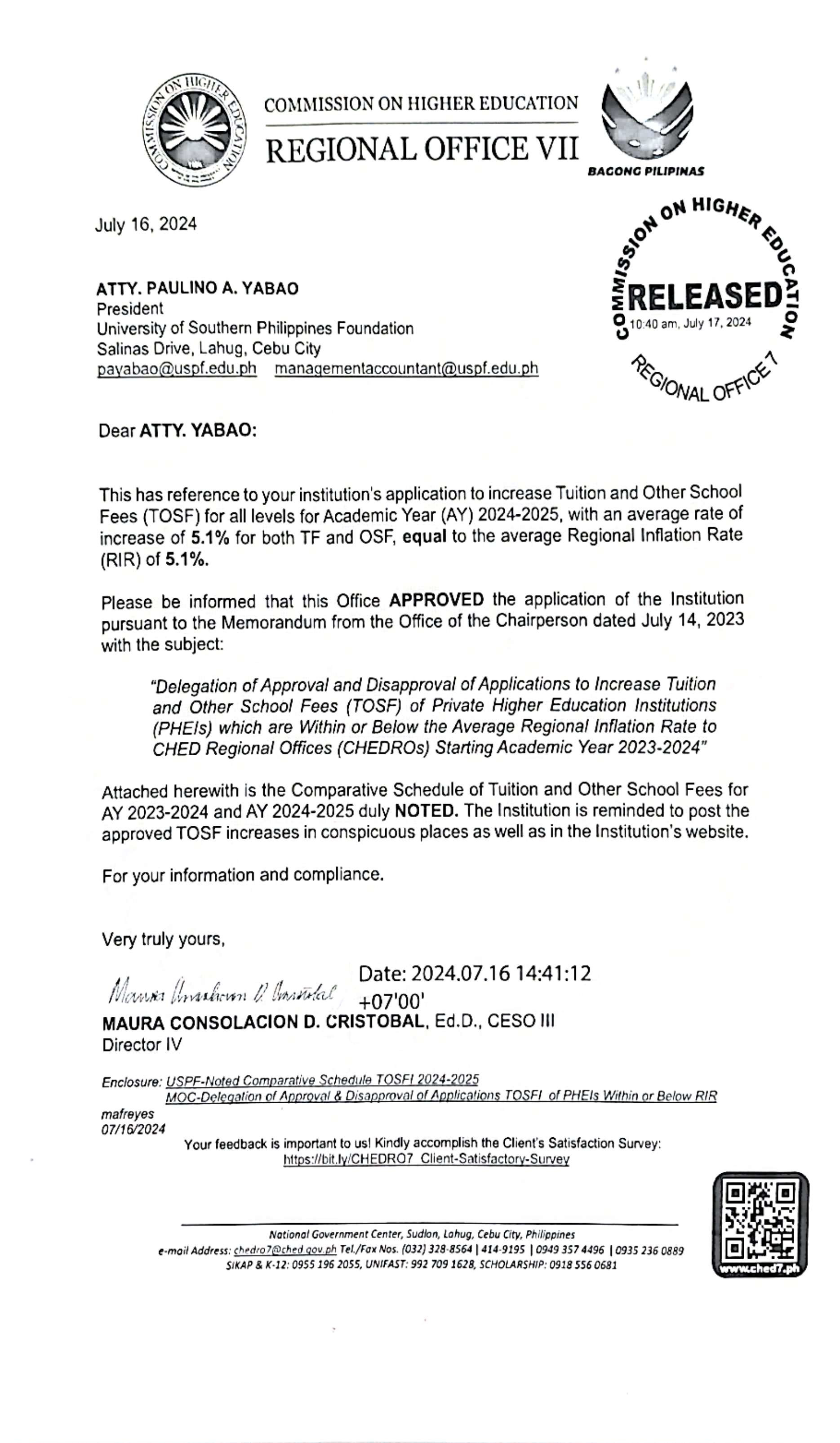 CHED Approved Application for Tuition and Other School Fees (TOSF) for AY 2024 to 2025