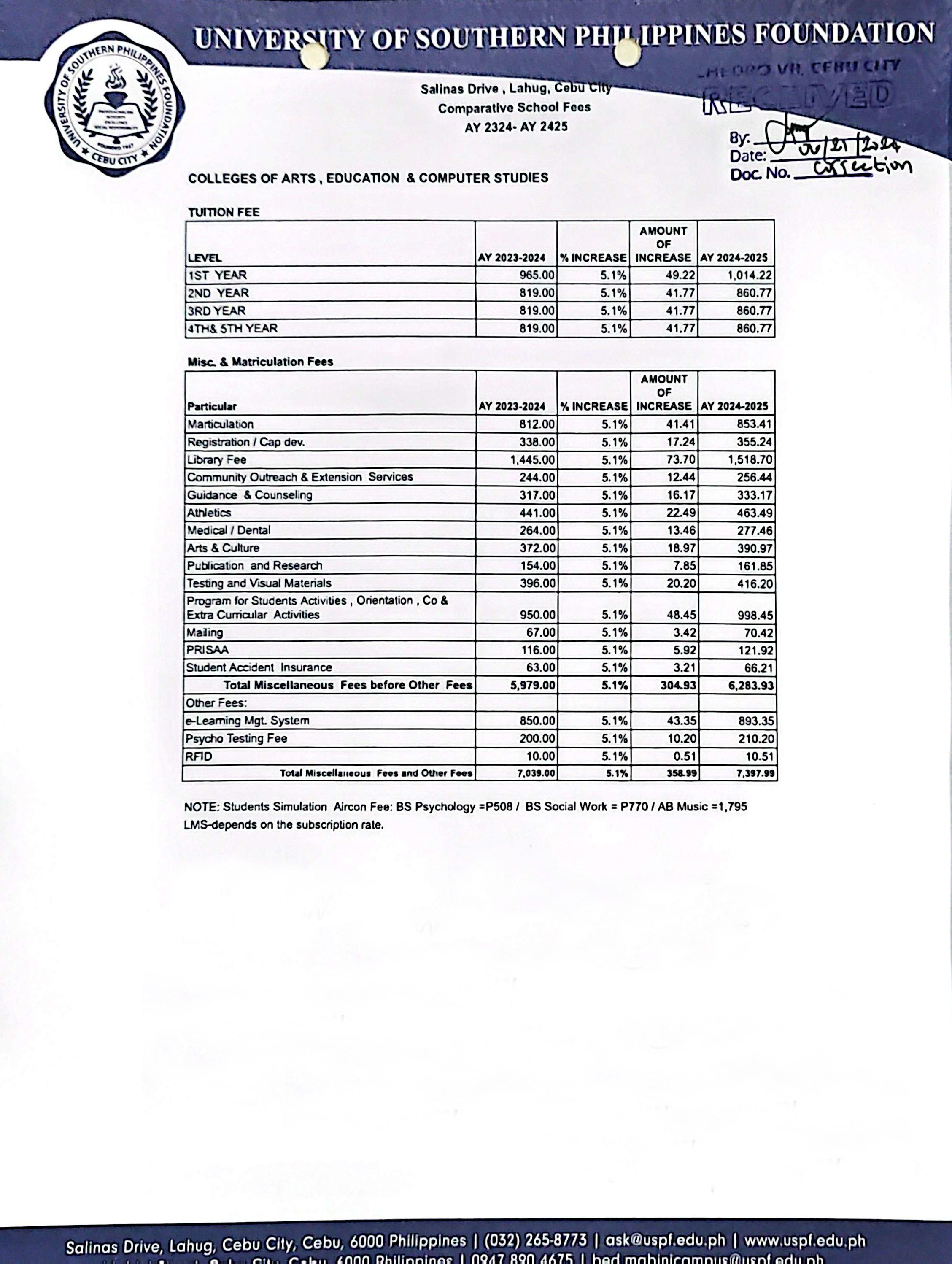 Tuition and Other School Fees (TOSF) for AY 2024 to 2025